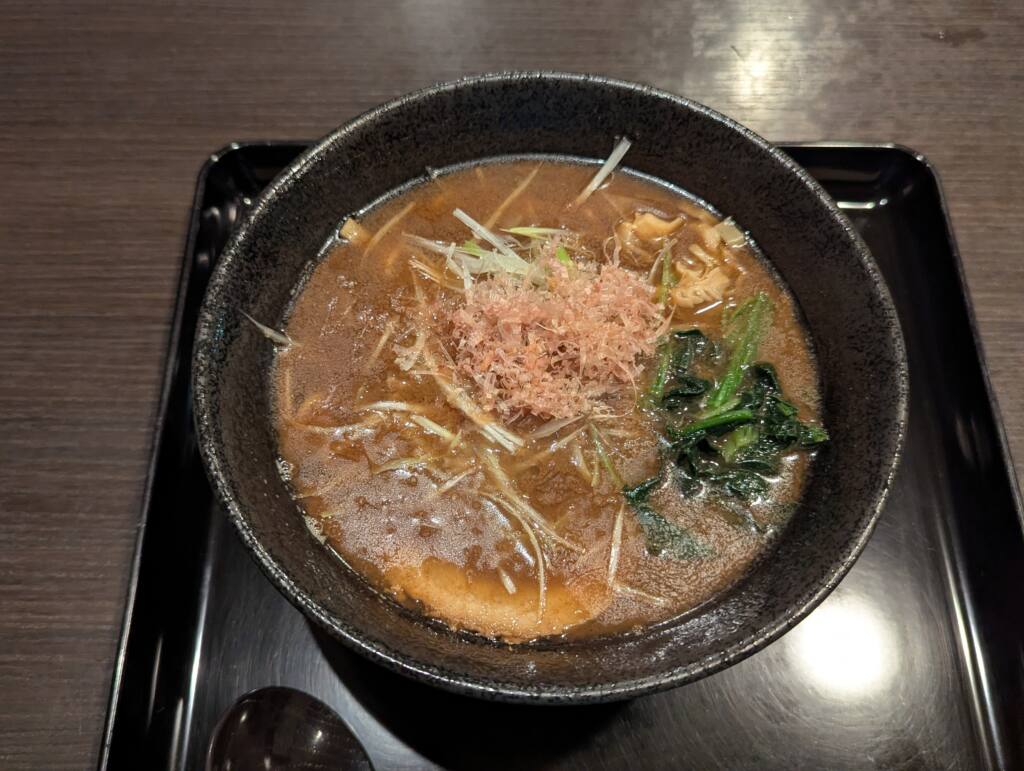 採集後、魚介豚骨系刀削麺。