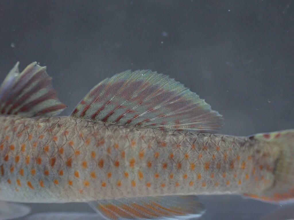 東北のヨシノボリに共通する傾向として、♂の第二背鰭の縞模様が比較的目立つ印象があります。
