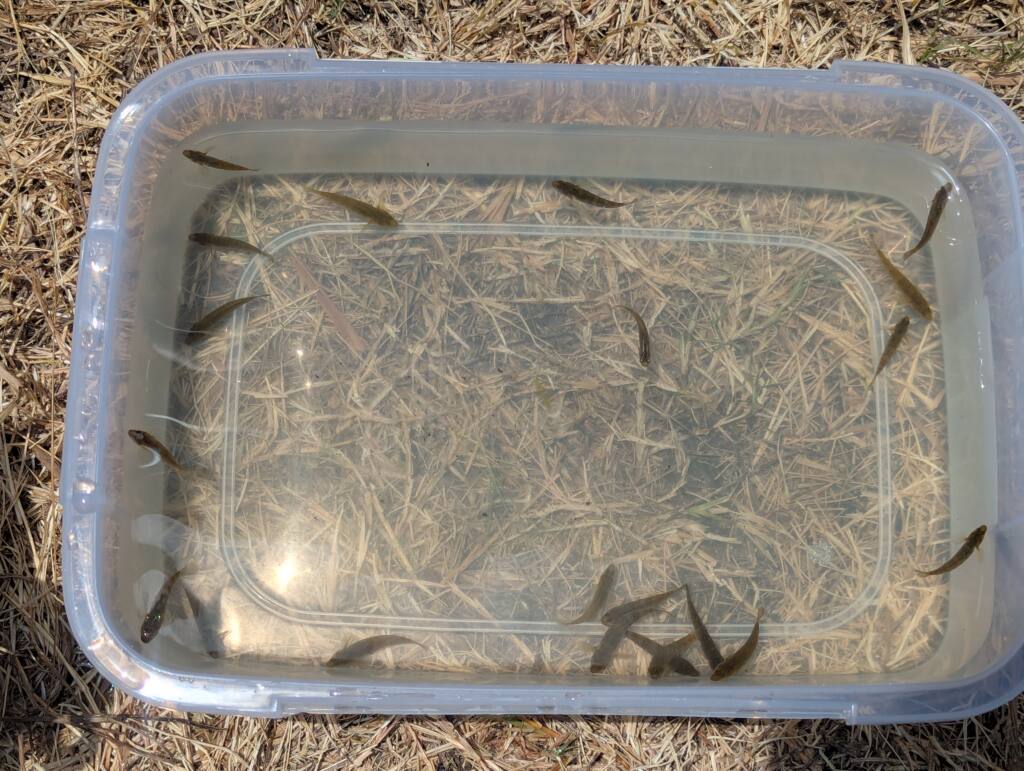 おそらく目的のヨシノボリと思わしき、小型のハゼがたくさん見えます。