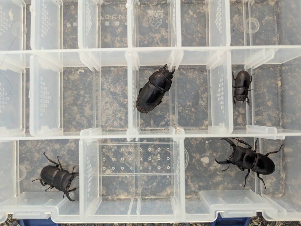 クワガタ採集に関しては、朝にさらにヒラタを1ペア追加し、2ペアとなりました。